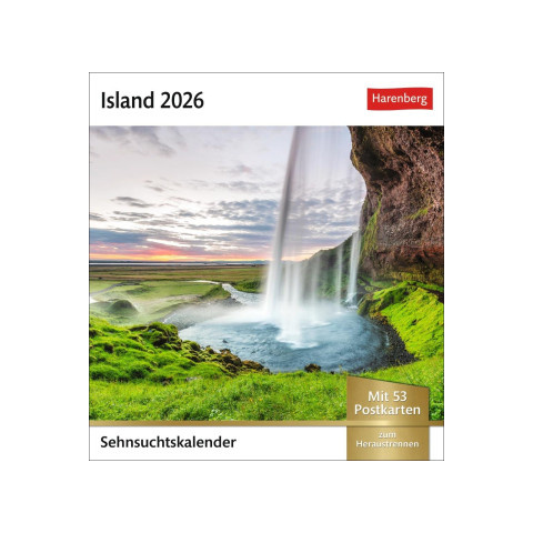 1 kép Island Sehnsuchtskalender 2026 - Wochenkalender mit 53 Postkarten