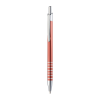 Fényes, fém golyóstoll króm gyűrűkkel ellátva. A toll kéken író tollbetétet tartalmaz