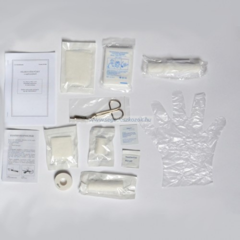 101-200 fő közötti létszámig munkahelyre, óvodába, iskolába, üzembe, rendezvényre megfelelő elsősegély doboz tartalom. Szavatossági idő: Gyártástól számított 5 év a steril kötszerek esetén, 3 év a fertőtlenítőre Az MSZ 13553 szabvány lehetővé teszi
