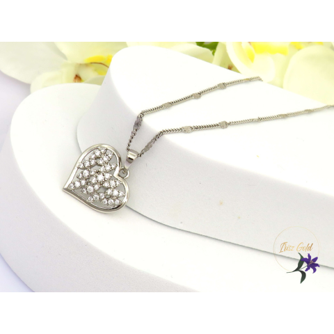 Antiallergén bőrbarát szív medálos nyaklánc cirkon kövekkel Szin: rodium Méret: 50 cm medál:24x18mm