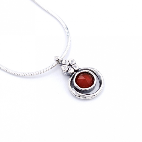1 kép Izraeli ezüst karneol köves medál lánccal "kis virág"