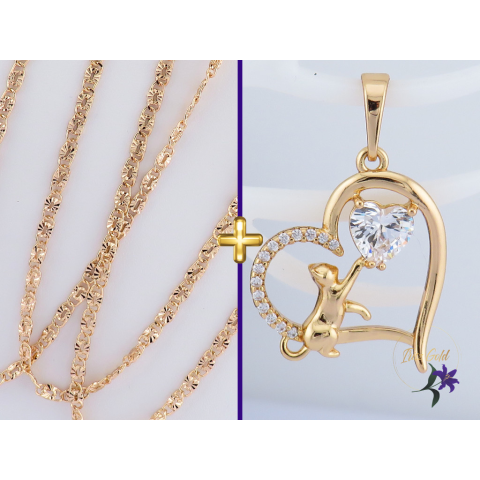 1 kép Jaffa antiallergén cicás medál sziv alakban Ditti csillagszemes láncon 50 cm 18K
