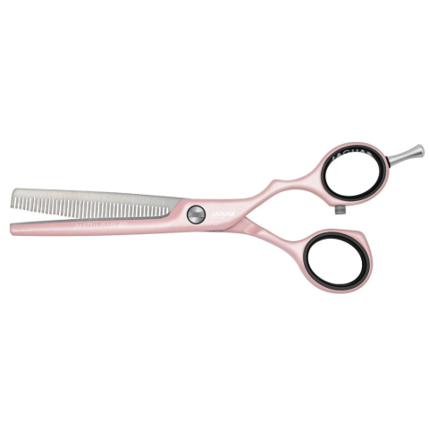 Jaguar Pastell Plus Offset ES40 Rosé ritkító olló 3054-8 - 40 ritkító fogával ez a fodrász olló megkönnyíti a modellezést és finoman ritkítja a hajat - Kiváló minőségű fémbevonattal rendelkezik, amely védelmet nyújt a nikkelallergia ellen - A kovács