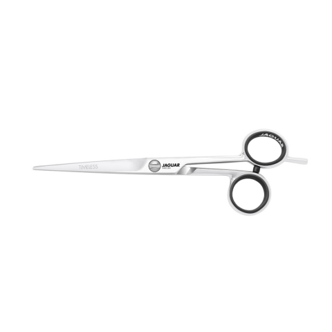 Jaguar Timeless hajvágó olló 6 - Eltolt kialakítás az ergonomikus fogantyúpozícióért és a nyugodt munkavégzésért - A karcsú penge vonala, amely elöl hegyesedik, a kovácsolt ujjtámaszos szárban folytatódik - A kerek hüvelykujjgyűrű segíti az olló erg
