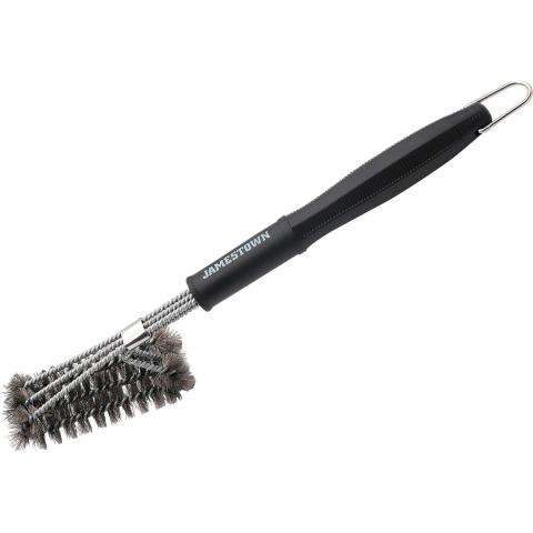 A praktikus Jamestown grillkefe a Jamestown grill hasznos tartozéka. Ezzel a kiegészítővel gyorsan és alaposan megtisztíthatja grilljét. A háromfejes kefének köszönhetően a nagyobb felületek is egyszerűen és gyorsan tisztíthatók. A Jamestown grill kiegészítője A grillkefe zománcozott acél- és öntvényrácsokhoz, valamint nemesacél rácsokhoz is alkalmas. A kefe egy nemesacél akasztóval van ellátva, így felakasztható a grillre. Teljes hossza 48 cm.