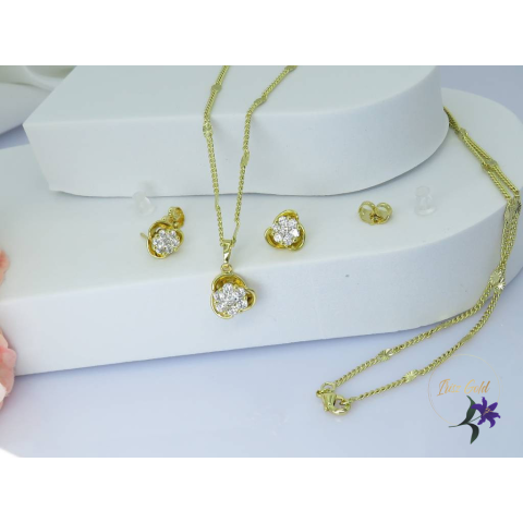 Antiallergén bőrbarát kis virágos szett középen fehér kővel nyaklánc főlbpvalóSzin: 14K Méret: 50cm/1,5 mm kis lapos szemekkel díszítve Medál: 15x10mm Fülbevaló: 10x10 mm Bedugós: szár 10mm