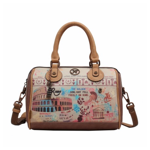 A Janet A Tour of Rome kézitáska, válltáska bájos, római hangulatot idéző mintájával és meleg, harmonikus színvilágával különleges, nőies megjelenést biztosít.
