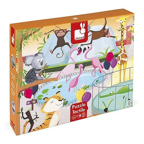 Janod Egy nap az állatkertben tapintos puzzle 20 db Tapintós állatkerti állatok puzzle! A Janod Egy nap az állatkertben tapintós puzzle állatain elhelyezett különböző anyagok érintésével fejleszthetik érzékszerveiket és tapintásukat A Janod Egy nap az