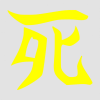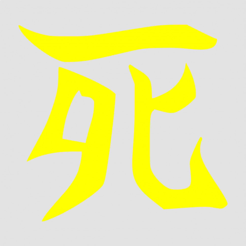 Japán írásjel "halál" 15cm x 15cm sárga autó dekoráció 1 kép