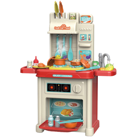 – a konyha valósághű hangokat és főzési zajokat bocsát ki, mint például a sütés. A bal oldali égő beépített párologtatóval rendelkezik, amely lehetővé teszi a "hideg gőz" hatásának elérését. A gőz hatásának eléréséhez öntsön körülbelül 50 ml vizet az égőnyílásba. Tegye le az edényt, és egy idő után (amikor a "víz forr") hideg gőz jön ki az edényből (nem égeti