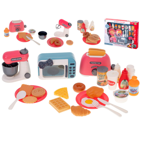 1 kép Játék mikrohullámú sütő, kenyérpirító, mixer, zöldség + tartozékok
