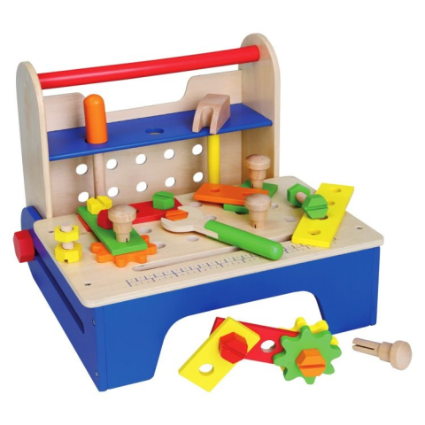 Játék munkapad, barkácsasztal Anyaga: fa Méret: 37,5 x 12,5 x 32 cm
