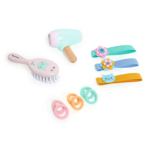 Pomea játékbaba kiegészítő - Baba fodrászkészlet Djeco Lovely Pomea hajasbabákhoz Baba fodrászkészlet - Pomea játékbaba kiegészítőEz a szép, jól felszerelt készlet minden eszközt tartalmaz, amely a babák hajának szárításához, kibontásához szükséges. A