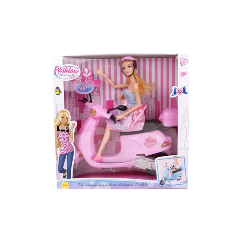 1 kép Játékbaba robogóval - 28 cm - rózsaszín