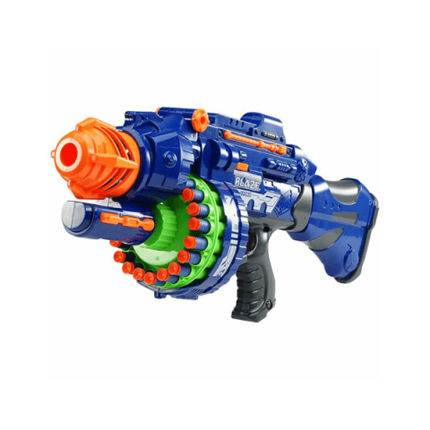 Jellemzők Termék mérete: 56×25,5×16 cm Termék súlya: 0,9 kg Töltény mérete: 7,5×1,5 cm A tárba max. 20 db lövedék tölthető. A termék 6 db AA elemmel működik, amit a csomag nem tartalmaz. 8 éven aluli gyermekek részére NEM ajánlott!