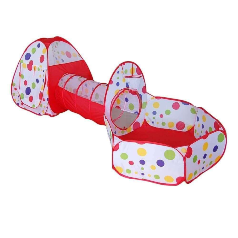 Játszósátor alagúttal (Piros-fehér pöttyös) játszósátor, alagút 1 kép
