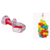 Játszósátor alagúttal (Piros-fehér pöttyös) + Színes labda hálóban - 60 darab