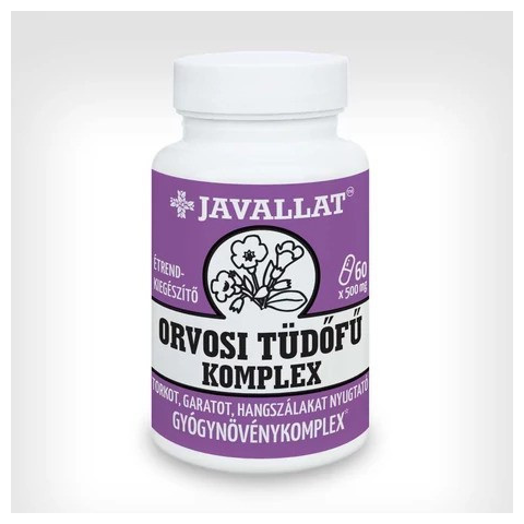 JAVALLAT® Orvosi tüdőfű komplex 60 db étrend-kiegészítő kapszula,bevizsgált, kiváló minőségű gyógynövényekből. Egymás hatását támogató gyógynövényekkel: az orvosi tüdőfű levél, a lándzsás útifű levél, a papsajtmályvalevél, az orvosi ziliz levél és gyö