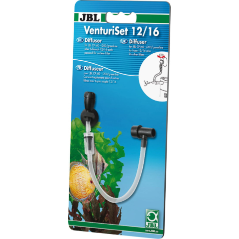Levegőztető adapter szűrőkhöz. A JBL VenturiSet 12/16 egy diffúzor szett a CristalProfi i sorozat belső szűrőihez, valamint szabályozza az akváriumok levegőellátását. A JBL VenturiSet 12/16 a belső szűrő vízkifolyójához csatlakozik. A szett alkalmas 12/16