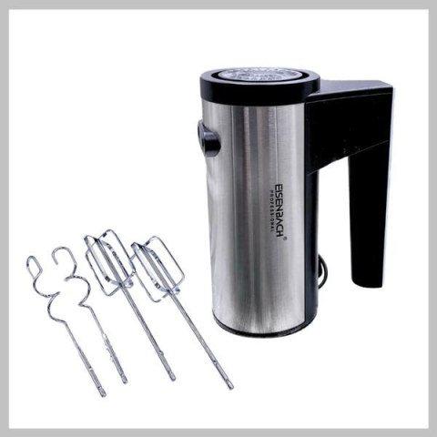 Eisenbach 5 sebességes kézi mixer JE-904E Az Eisenbach JE-904E 5 sebességes elektromos kézi mixer - 400 W egy sokoldalú és hatékony eszköz, amelyet különféle főzési és sütési igények kielégítésére terveztek. 5 állítható sebességfokozatával könnyedén kiválaszthatja a megfelelő beállítást a különböző feladatokhoz, legyen szó süteménytészta keveréséről, tejszínhabról vagy tésztadagasztásról. A nagy, 400 W-os teljesítmény hatékony teljesítményt b