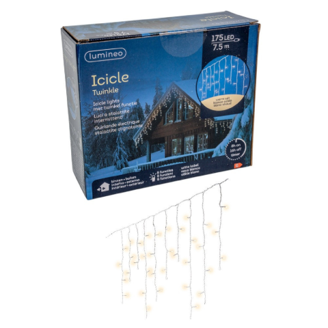 1 kép Jégcsap 175 LED-es fehér kábeles programos adapterrel meleg
