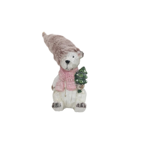 1 kép Jegesmaci ülő rózsaszín sapkás poly 14x7cm