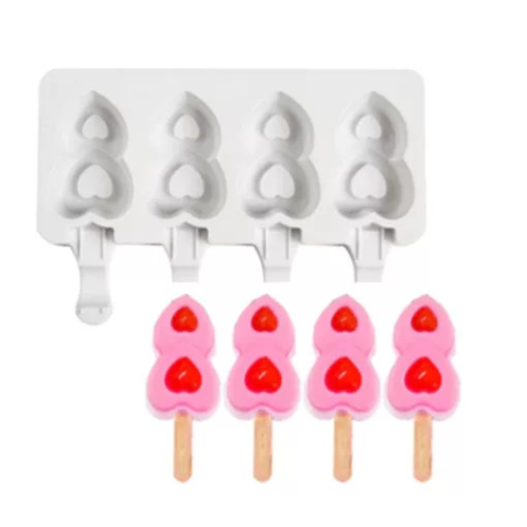 1 kép Jégkrém és sütinyalóka készítő szilikon forma szív alakú, 4 adag