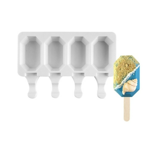 Jégkrém készítő forma, nyolcszög alakú, szilikon, 19×13 cm A nyolcszög alakú jégkrémformával egyszerre 4 darab egyedi jégkrémet/nyalókát készíthetsz.Anyaga: Kiváló minőségű szilikon. Mérete: a teljes szilikon forma mérete: 19 × 13 × 1,9 cm. A termék sz