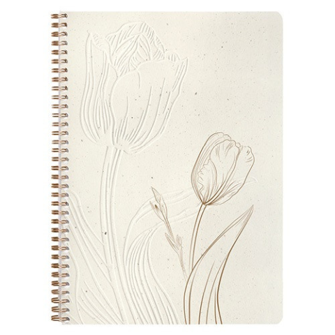 Jegyzetfüzet Clairefontaine Tulip paper, spirálos, A/4, 21x29,7cm, 74 lapos, pontozott Természetesen egyszerű, texturált borítású Tulip kollekció a Clairefontainetől. Elefántcsont színű, velin papír, 74 lapos, spirálos, pontozott Mérete: A4 - 21x
