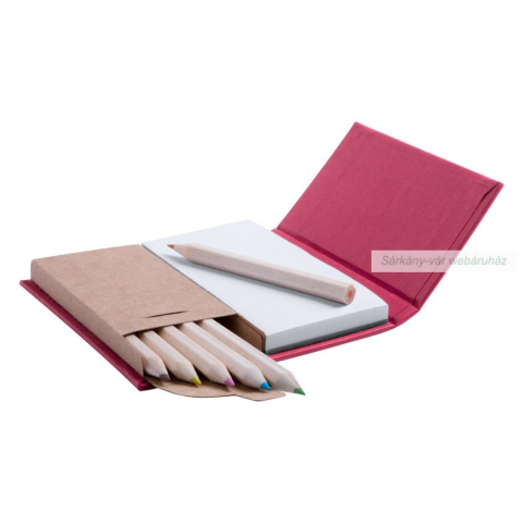Keményborítású jegyzetfüzet 60 üres lappal, hozzá egy 6 színes ceruzát tartalmazó karton tokkal. Méret: 10,4 x 10,4 x 1,3 cm | Rendelésre: 8-12 nap!