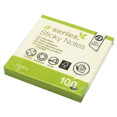 1 kép Jegyzettömb öntapadó, 75x75mm, 100lap, A-Series, sárga