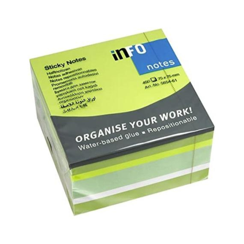 1 kép Jegyzettömb öntapadó, 75x75mm, 450lap, Info Notes intenzív zöld árnyalatok