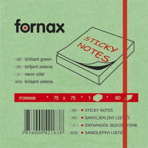 1 kép Jegyzettömb öntapadó, 75x75mm, 80lap, Fornax neon zöld