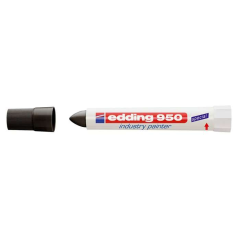 Jelölő marker, 10 mm, kúpos, EDDING 950, fekete - rendkívül permanens, kiválóan fedő festékpaszta - vonalvastagság: kb. 10 mm - főként durva felületek, szennyezett anyagok vagy rozsdás fémek feliratozására alkalmas - színtartó, száradás után törlés-, é