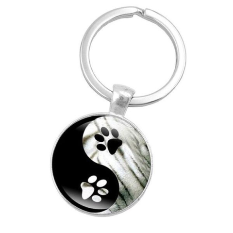 Jin jang kulcstartó tappancs szimbólummal, stílusos kiegészítő minden állatbarátnak. Kiváló ajándék kutya- és cicás rajongóknak