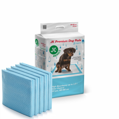 JK Animals Kutyapelenka 60x60 cm – 10 db-os csomag (48831) Prémium nedvszívó alátét kölyök, idős vagy lábadozó kutyák számára A JK Animals kutyapelenka ideális megoldást nyújt a kölyökkutyák szobatisztaságra szoktatásához, valamint inkontinenciában szenve