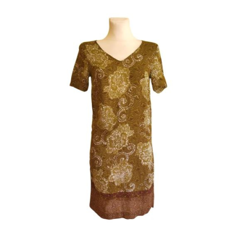 Ez a Jones zöld mintás női ruha egy nagyon csinos, finom nyári darab. Anyaga puha és vékony viszkóz, amely jól szellőzik. Fazonja klasszikus, lenge esésű. Igazi kortalan, amely soha nem megy ki a divatból. Jól kombinálható bármilyen nyá