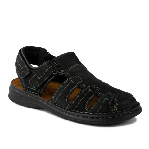 Josef Seibel férfi szandálcipő a nyári hőségre azoknak, akik nem szeretik a nyitott szandált, de zárt cipőben sem akarnak lenni. Ez a szandálcipő szellős, de nem egészen nyitott, védi a lábujjakat. „H” komort szélességgel rendelkezik