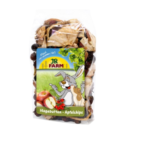 JR Farm Csipkebogyó almaszeletekkel 125 gr Vitaminban gazdag nassolni való kis kedvencednek. Zsírszegény jutalom falat almából és ropogós csipkebogyóból. Ideális kiegészítő takarmány minden törpe nyúlnak és rágcsálónak (kivéve a degut, törpehörcsögöt és futóegeret) 70% csipkebogyó és 30% almaszelet. Analitikai összetevői: Fehérje 4,7%, zsírtartalom 4,5%, nyersrost 23%, nyershamu 3,3%; Ajánlott fogyasztás: 1-4 db naponta – az állatok méretétől és súlyá