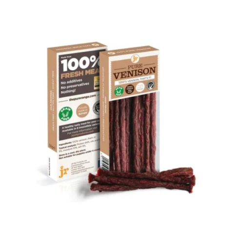 Természetes, ízletes és egészséges jutalomfalat minden kutyának! A JR Pet Products szarvashús stickjei 100%-ban természetes, emberi fogyasztásra is alkalmas, friss színhúsból készülnek – semmi belsőség, csak tiszta, monoprotein szarvashús.