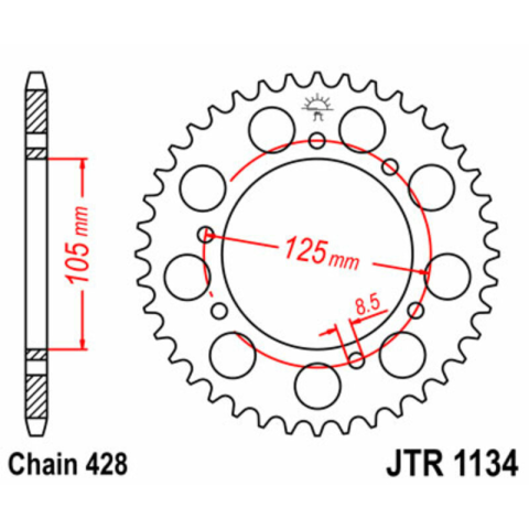JT SPROCKETS Acél Standard Hátsó Láncsor 1134 - 428