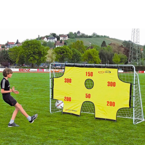 Junior fém csővázas focikapu célzó fallal és hálóval. Játsszatok otthon ezzel a szuper kapuval!Ideális gyakorló futball kapu, találatot nehezítő hálóval, mellyel jól fejleszthetőek a pontos rúgások. A célzófal le is vehető, így anélkül is használhatjuk a