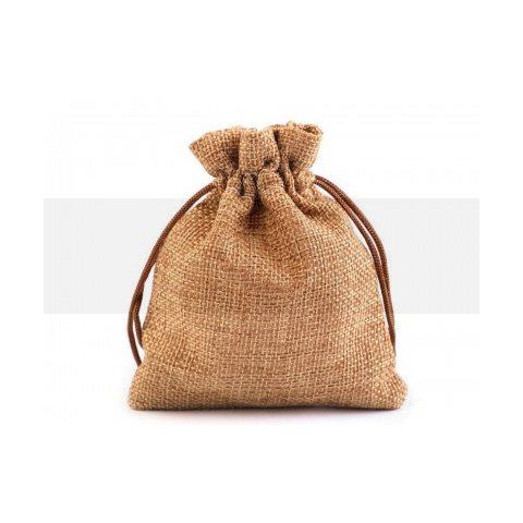 Az ajá,ndé,ktasak anyaga a termé,szetes jutá,ra hasonlí,t. Nem szö,vö,tt textí,liá,val van bé,lelve. Kö,nnyen zá,ró,dik ké,t polié,szter zsinó,rral.Haszná,lata: A tasakot szá,rí,tott fűszernö,vé,nyek, szá,rí,tott virá,gok, pl. levendula tá,rolá,sá,ra haszná,ljá,k. É,rdekes csomagoló,anyag, rusztikus stí,lusú