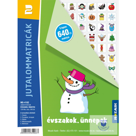 5 lapon összesen 640 db jutalommatrica. További matricacsomagok: Jutalommatricák 1. Classic Jutalommatricák 3. Állatok Jutalommatricák 4. Mesék Jutalommatricák 5. Motiváció Jutalommatricák 6. Dinók 5-féle matricakészletünk egy csomagban kedvezményesen