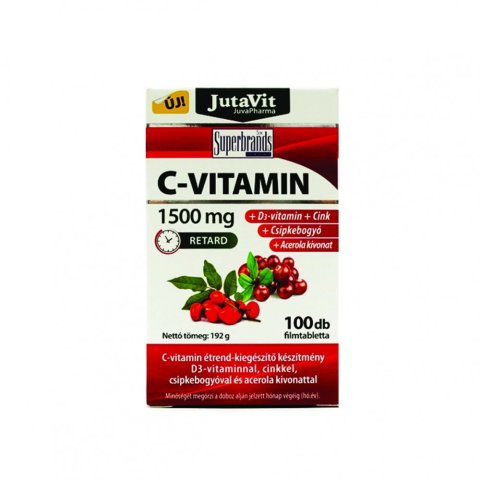 JutaVit C-Vitamin 1500mg+Acerola+D3+Cink+Csipkeb. 100db Nyújtott felszívódású C-Vitamin étrend-kiegészítő készítmény D3-vitaminnal, cinkkel és csipkebogyó kivonattal, mely fokozatosan adagolja a szervezetőnk számára a C-vitamint. A C-vitamin, D3-vitamin é