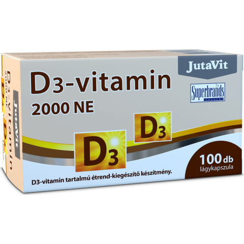 JutaVit D3-vitamin 2000NE (50µg) D3-vitamin tartalmú étrend-kiegészítő készítmény. JutaVit D3-vitamin 2000NE (50µg) D3-vitamin tartalmú étrend-kiegészítő készítmény. A D3-vitamin hozzájárul az immunrendszer normál működéséhez, a kalcium és foszfor nor