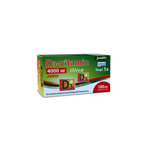 JutaVit D3-vitamin 4000NE (100µg) Olíva Forte lágykapszula 100db Olíva Forte D3-vitamin tartalmú étrend-kiegészítő készítmény. JutaVit D3-vitamin 4000NE (100µg) Olíva Forte lágykapszula 100db A D-vitamin a zsírban oldódó vitaminok családjába tartozik.
