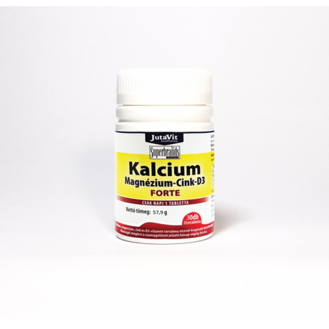 JutaVit Kalcium+Magnézium+Cink+D3 30db-os termék. JutaVit Kalcium+Magnézium+Cink + D3 vitamin 30db. A szervezet és a sejtek számára fontos ásványi anyagokat, kalciumot, magnéziumot, és cinket tartalmazó étrend-kiegészítő. A KALCIUM fontos az egészség