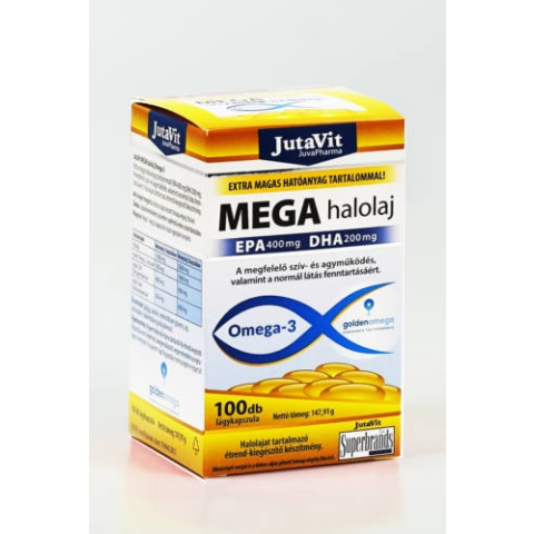 JutaVit MEGA halolaj Omega-3 extra magas hatóanyag tartalmú (EPA 400 mg DHA 200 mg) halolajat tartalmazó étrend-kiegészítő készítmény. A megfelelő szív- és agyműködés, valamint a normál látás fenntartásáért. A kapszula alapanyagául szolgáló szardella (an