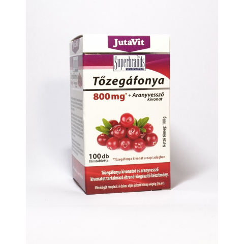 A JutaVit Tőzegáfonya 800mg*+Aranyvessző kivonat Tőzegáfonya (Vaccinium Macrocarpon) kivonatot és aranyvessző (Solidago Virgaurea) kivonatot tartalmazó étrend-kiegészítő. Az aranyvessző hozzájárul a húgyutak egészségéhez. Adagolás: Napi 2 filmtable